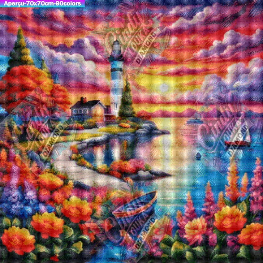 Crépuscule au Phare Enchanté 70x70 cm