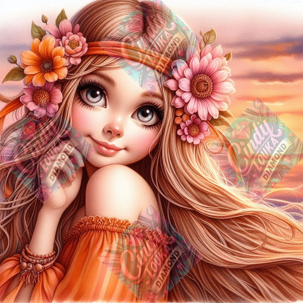 La Petite Fée du Coucher du Soleil 70x70 cm