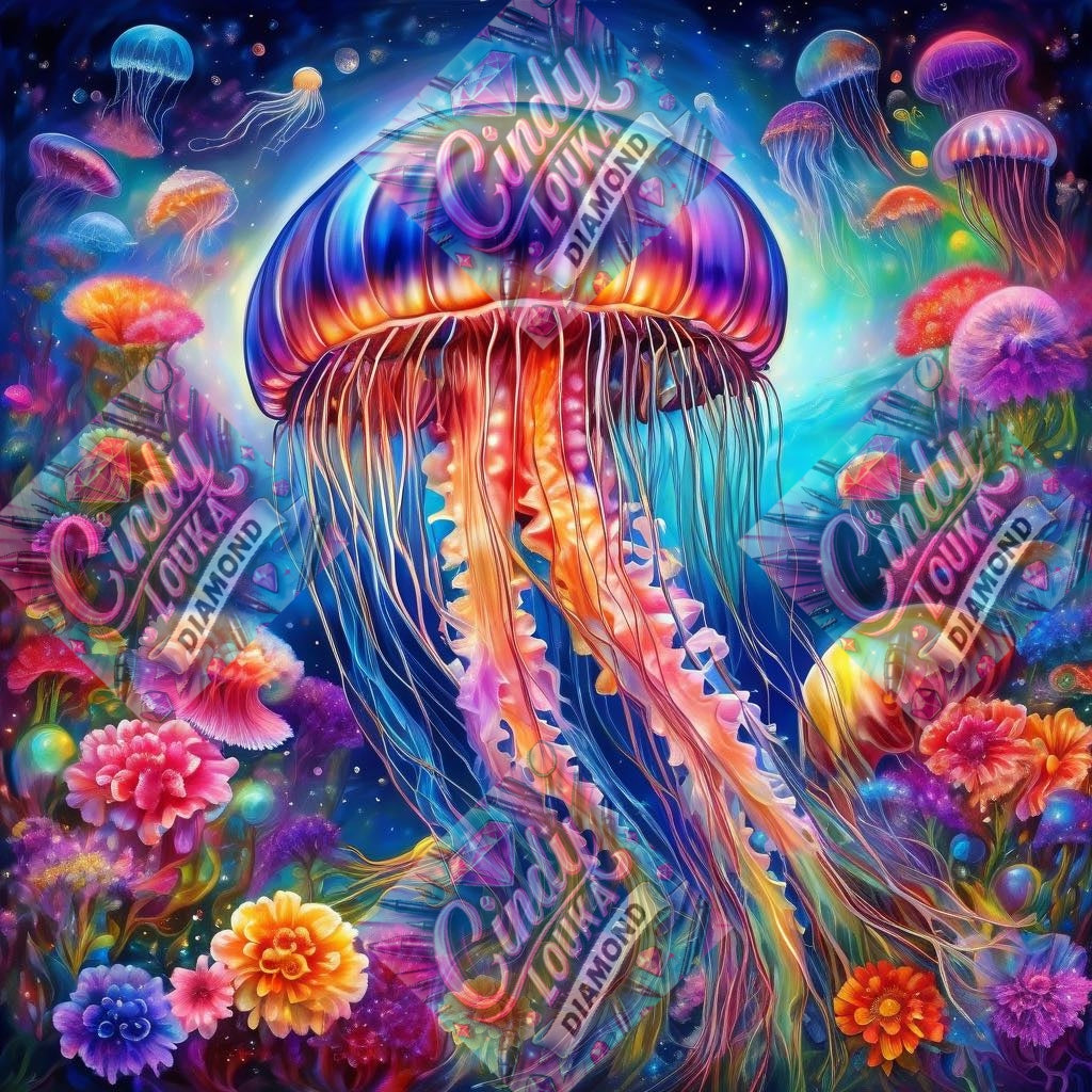 Méduses et Fleurs des Profondeurs 70x70 cm
